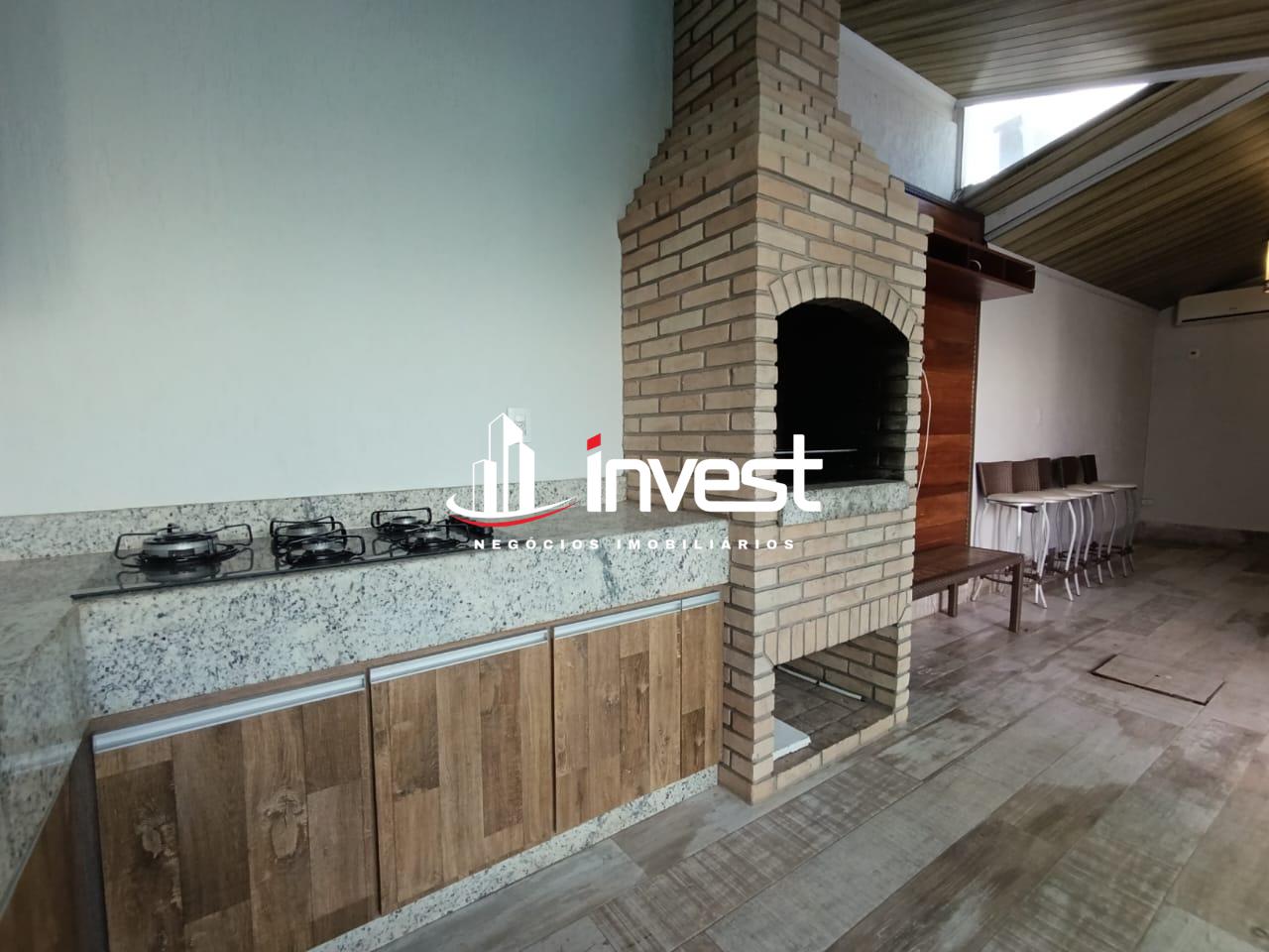 Varanda gourmet com churrasqueira, ideal para momentos de lazer ao ar livre