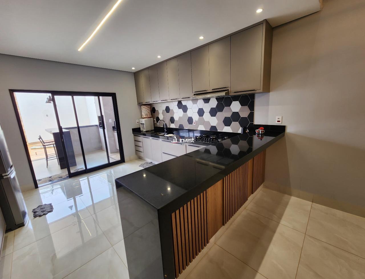 - Cozinha americana com armários planejados e bancadas em granito